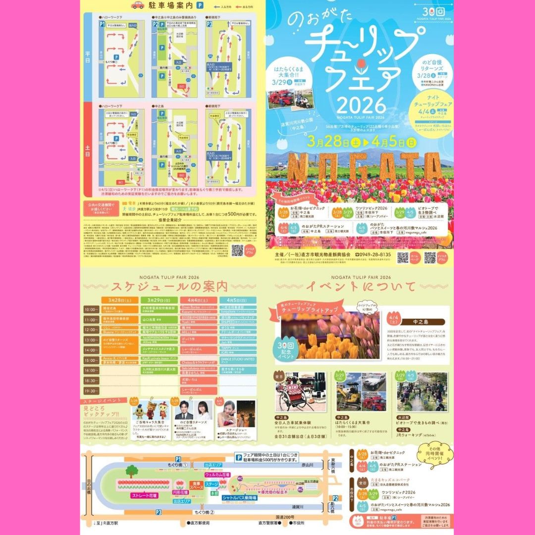 〈一社〉直方市観光物産振興協会サイトの新着情報でお知らせされてますように、のおがたチューリップフェア2026が遠賀川河川敷公園にて、3月28日(土)〜4月5日(日)まで開催されますね。